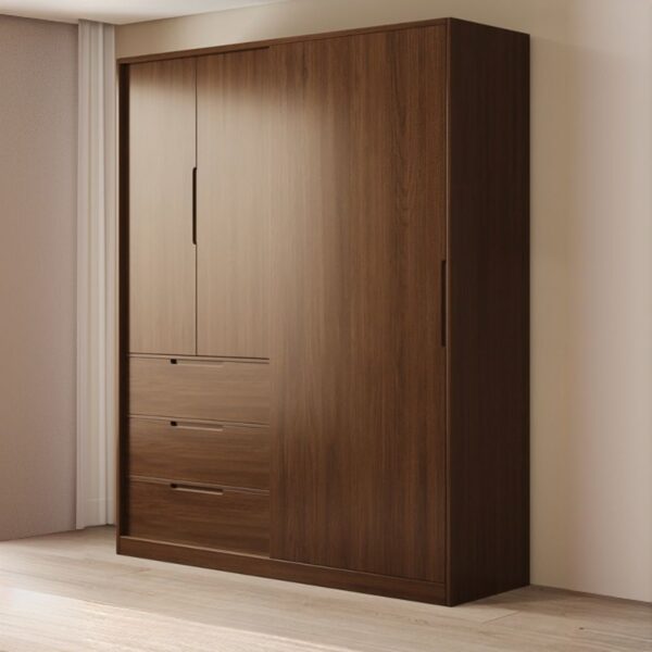 Dengan sistem pintu geser, lemari ini sangat praktis untuk ruangan sempit karena tidak memakan banyak tempat. Desain minimalis dengan finishing natural kayu membuatnya terlihat elegan dan mudah dipadukan dengan berbagai dekorasi interior.